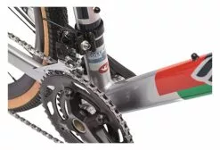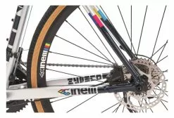 La Cinelli Zydeco cumple los últimos requisitos de una bicicleta de gravel y forma un equilibrio perfecto entre máquina de carreras y bicicleta de paseo. Su cuadro de aleación de aluminio Columbus, ni demasiado pesado ni demasiado ligero, proporciona comodidad y equilibrio, mientras que la generosa distancia entre ejes del cuadro ofrece más estabilidad en terrenos abruptos. El uso de un sistema de eje pasante aumenta la eficacia de la frenada y la rigidez lateral del cuadro.