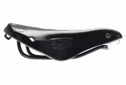 El B17 es nuestro modelo estrella, ideal para recorridos deportivos de larga distancia, trekking y uso de atb. Ha estado en el mercado por más de 100 años, siendo presentado ya en el catálogo de 1898. El modelo está disponible para caballeros y damas: B17 (caballeros) y B17 S (damas). Los modelos estándar cuentan con rieles de acero negro, las características especiales B17 de metal plateado de cobre y el titanio B17. Tanto el B17 Special como el Titanium también cuentan con remaches de cobre martillados a mano. caracteristicas: Longitud: 242 mm. Ancho: 176 mm. Altura: 58 mm. Peso: 460 g. Marco: acero. De color negro. Hecho en Inglaterra.