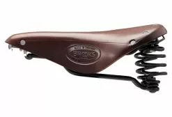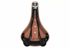 The Flyer and its ladies model Flyer S are classically sprung saddles for long distance trekking and touring. It is directly descending from the B66 Champion, first featured in the 1927 catalogue. Sharing the same leather tops of the B17 models, they combine the comfort of these popular models with the extra suspension granted by two rear springs.