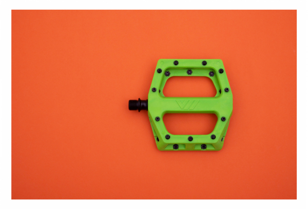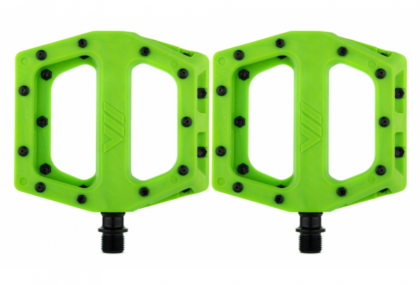 Los pedales DMR V11 priorizan la durabilidad, el cumplimiento y la asequibilidad. Ofrece una plataforma cóncava ancha, específica para DMR, que permite colocar el pie en el centro del pedal para un agarre supremo. El cuerpo de nailon reforzado con fibra de vidrio cuenta con once tacos de acero reemplazables en cada lado para un agarre sólido. Detalles: Cuerpo: Nylon + Fibras Eje: acero Cr-Mo de 9/16 '' Superficie de la plataforma 105 mm x 105 mm. 11 pines por lado, reemplazables Peso: 450g Colores: verde