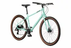 La K ona Dew Fitness City Bike es ideal para los que buscan un paseo asequible y cómodo. Ofrece la mezcla perfecta de funcionalidad y estética.Diseñada con un cuadro de aluminio ligero, transmisión Shimano Altus de 8 velocidades y frenos de disco Tektro.