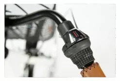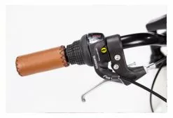 Su aspecto distinguido se complementa con elegantes detalles, como el comodísimo sillín confort y los puños del manillar en símil cuero marrón.