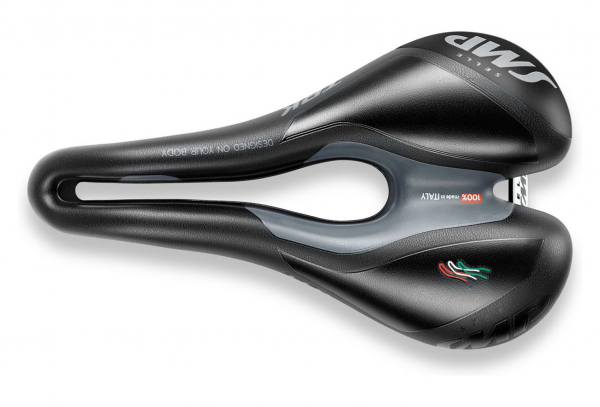 1: Canal central: resultado de extensos estudios biomecánicos sobre el posicionamiento del sillín y sobre la estructura de la pelvis gumana, se distribuye en toda la longitud del sillín, desde la parte posterior hasta la punta. Cualquiera que sea la posición asumida por el ciclista, evita la compresión de las estructuras perineales, impidiendo por un lado el riesgo de venas, arterias y oclusión capilar. Por otro lado, la aparición de una lesión nerviosa (entre las más comunes se encuentran el hormigueo y el entumecimiento).